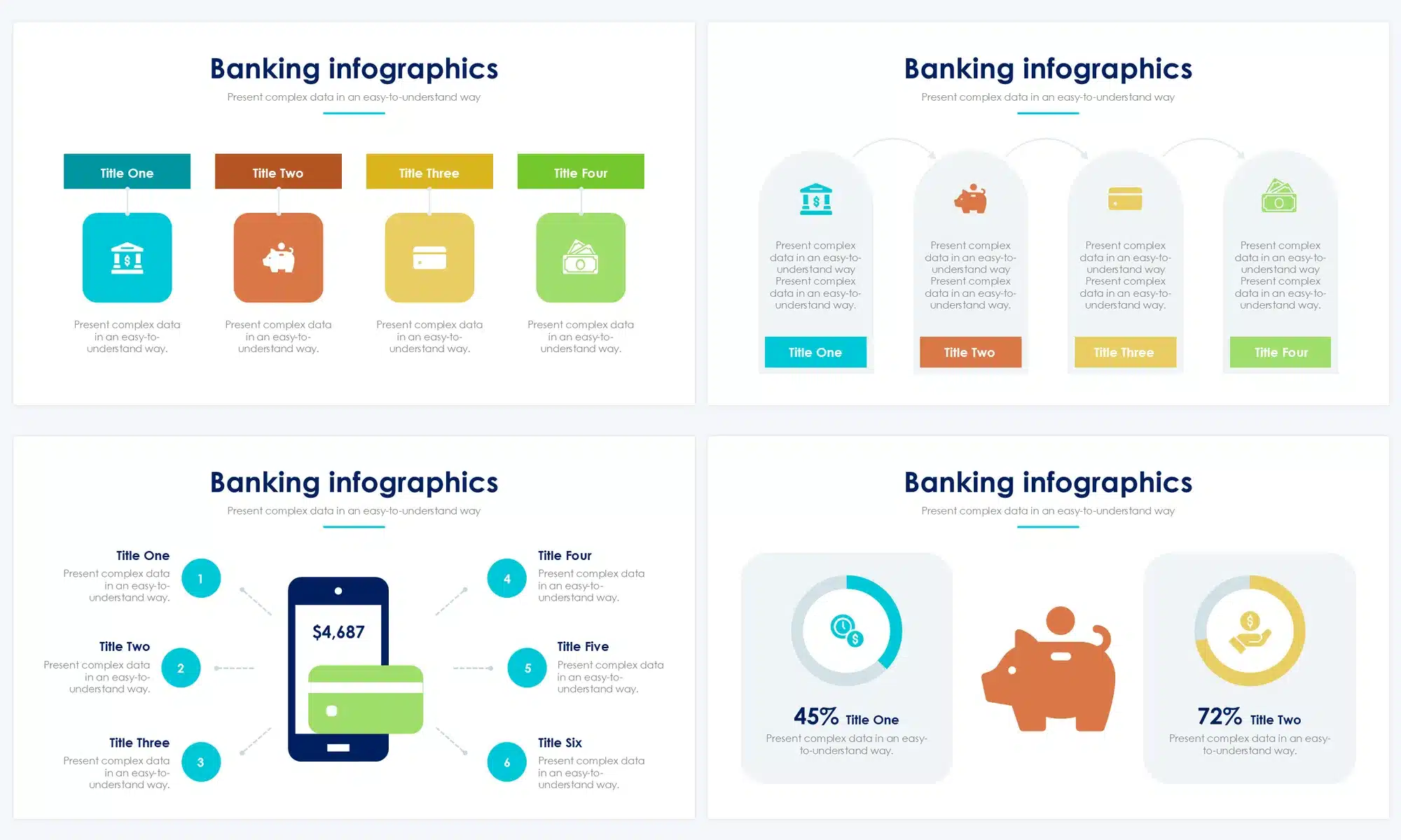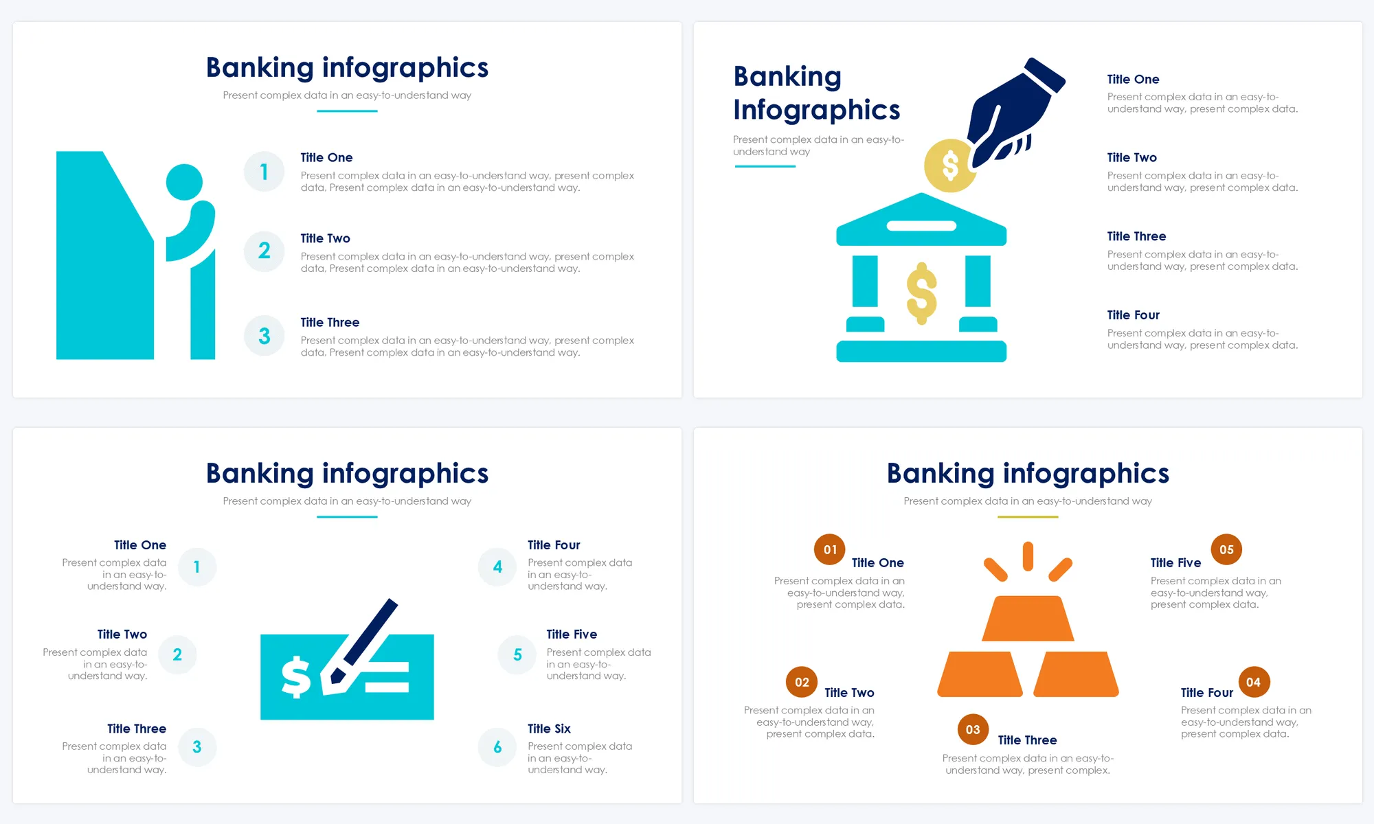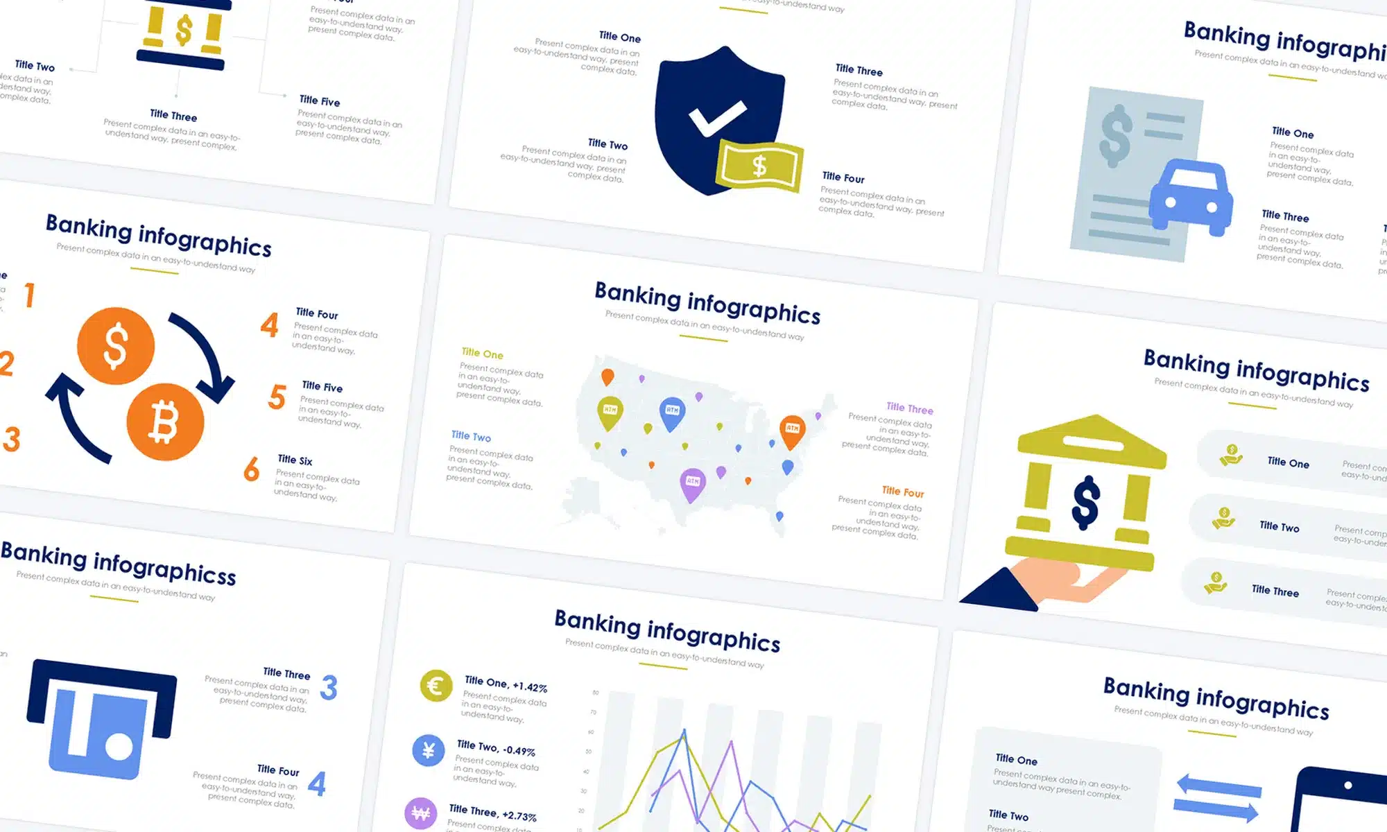 Navigate the complex world of finance and banking with Banking Slides. Illustrate banking services, financial products, market trends, or regulatory frameworks using insightful infographics and data analysis. These slides cater to financial institutions, consultants, or educational purposes.