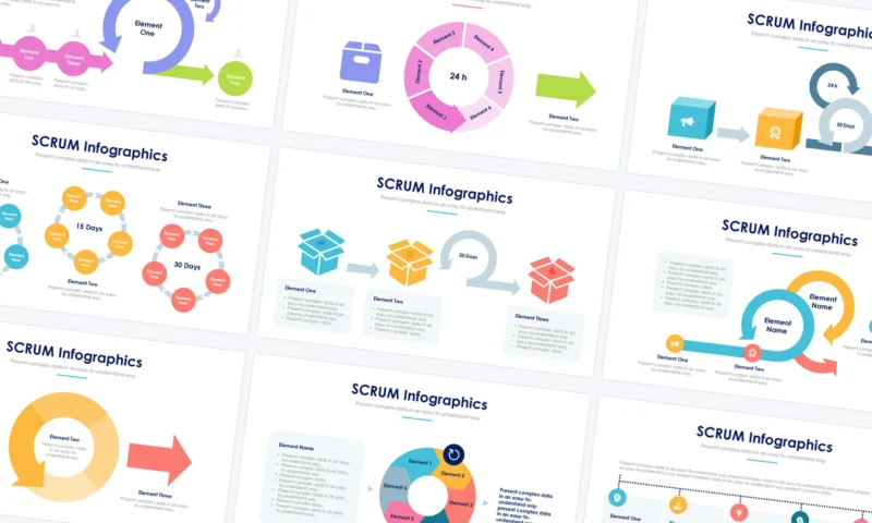 Discuss Agile methodologies, project management, or iterative development with Scrum Slides. Present Scrum frameworks, Agile practices, sprint planning, or team collaboration methods using visuals and explanatory content. These slides aid in Agile project management or team training.