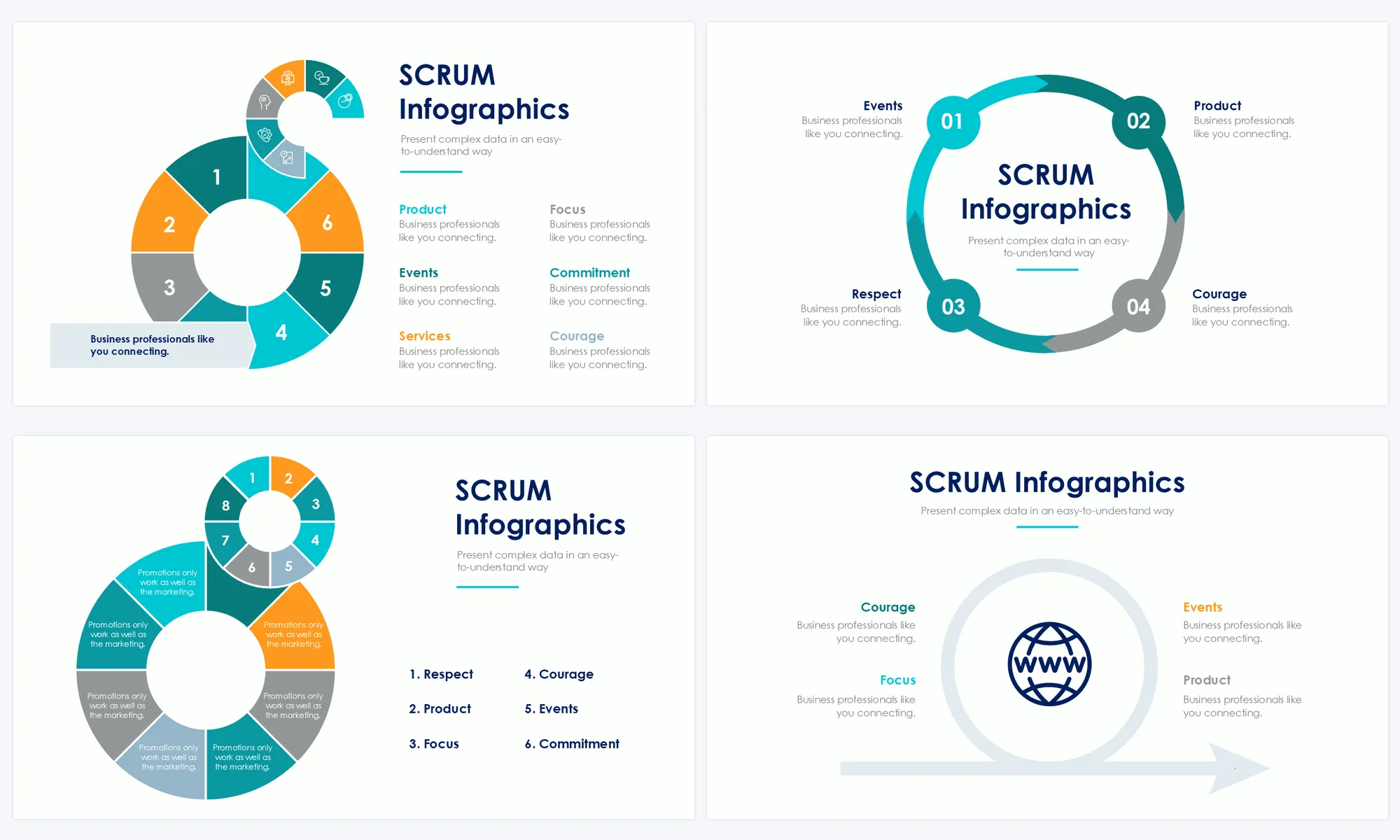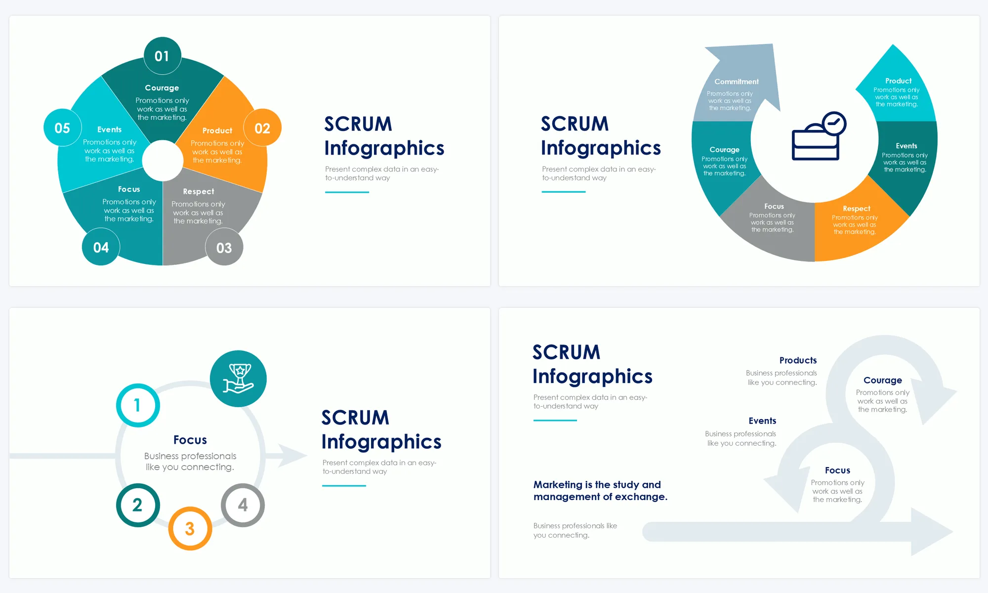 Discuss Agile methodologies, project management, or iterative development with Scrum Slides. Present Scrum frameworks, Agile practices, sprint planning, or team collaboration methods using visuals and explanatory content. These slides aid in Agile project management or team training.